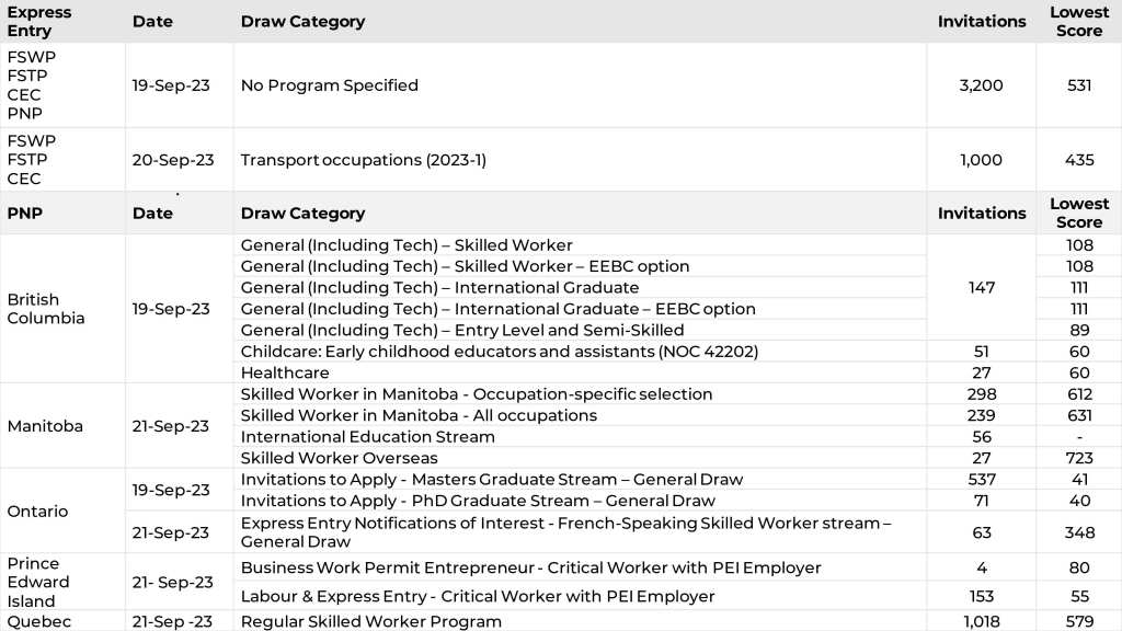 - Express Entry Category-Based Selection in Transport: Announced on September 18, 2023, this new initiative aims to address labour shortages in the transport sector, inviting candidates for roles like commercial truck drivers and pilots to apply for permanent residence. Read more