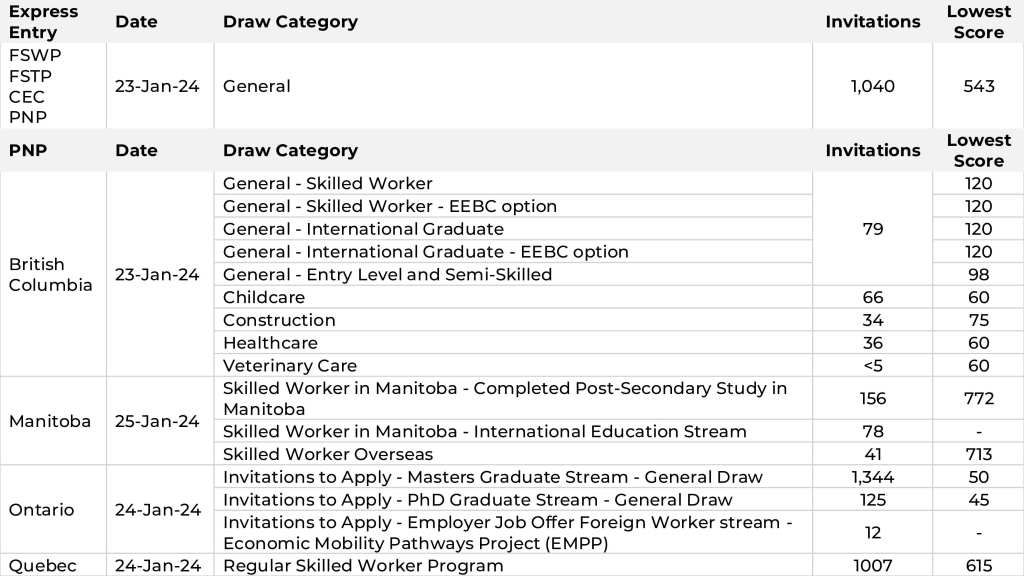 - International Mobility Program – Military Personnel and Family Members: On January 26, 2024, IRCC has revised terminology in the IMP, replacing “civilians” with “designated civilians.” This change more accurately describes members from designated states under the Visiting Forces Act who are not military personnel but are part of a visiting force’s civilian component. Additionally, updated contact information for work authorization requests for military personnel and their family members has been provided. Read more