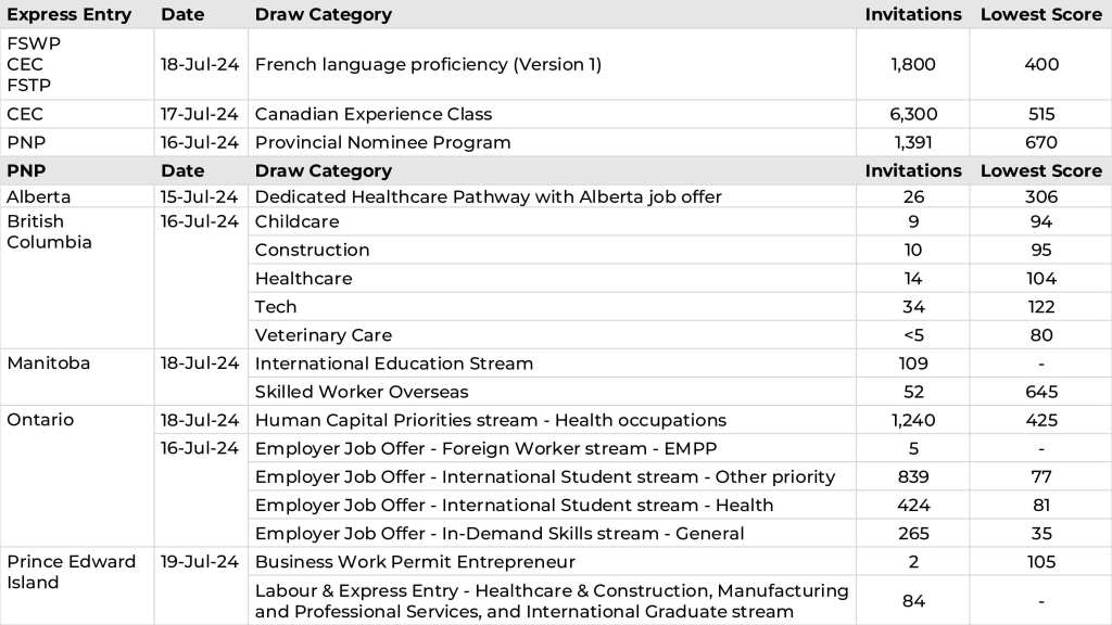 - July 28, 2024: The 2024 Express Entry Consultations conclude, inviting feedback on category-based selection to address economic priorities in STEM, healthcare, Francophone immigration, and emerging industries. Read more