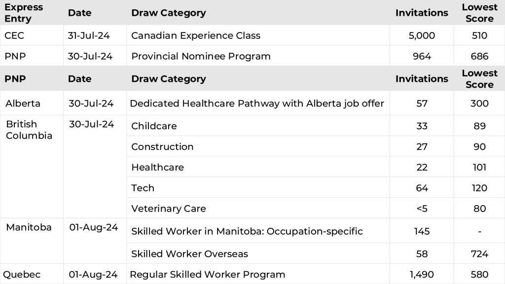 - August 31, 2024: Application deadline for permanent residency under Rural and Northern Immigration Pilot (RNIP), requiring community eligibility, job procurement, and a community recommendation. Read more