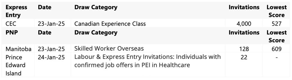 - Yukon Nominee Program Reduction and Delayed Intake: Premier Ranj Pillai announced IRCC’s 50% reduction of Yukon’s nominee allocation to 215 for 2025. The planned January 29, 2025, intake is delayed to reassess processes and address labour market needs strategically. IRCC now requires 75% of nominations to be from temporary residents in Canada. Applications from rural employers close on January 22, 2025, at 4:30 pm Yukon Time. Intake for Whitehorse and community-based employers will resume later. Read more