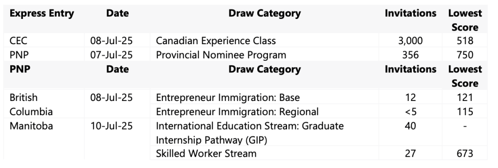 - Express Entry – Proof of Funds Updated: As of July 7, 2025, IRCC has increased the settlement funds required for Express Entry candidates under the Federal Skilled Worker and Federal Skilled Trades programs. Candidates must update their Express Entry profiles by July 28, 2025, to remain eligible. The update does not affect their profile submission date or ranking. Read more