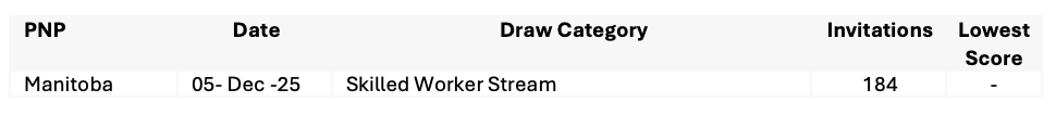 - Manitoba – Temporary PNP Support Letter Policy – December 4, 2025: Manitoba will accept applications for Support Letters under the temporary public policy for prospective Provincial Nominee Program candidates until December 15, 2025. IRCC will continue accepting applications under this temporary policy until December 31, 2025. Read more
