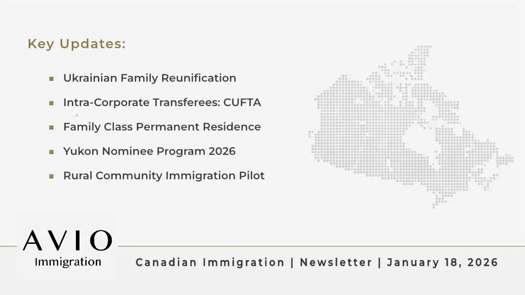 - Ukrainian Family Reunification – Temporary Residence Extensions – January 16, 2026: Canada extended access to temporary residence for Ukrainians who applied under the family reunification permanent residence pathway, allowing eligible applicants and their family members to apply from within Canada until March 31, 2027 for open work permits, work permit extensions, study permits, or extensions or restoration of temporary resident status, even without an acknowledgement of receipt; standard fees apply. Read more Public Policy: Read more