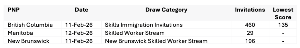 - Open Work Permits – Temporary Resident to Permanent Resident Pathway – February 13, 2026: PDIs updated to add a new “Refusals” section and clarify that family members applying before entry from outside Canada are exempt from the requirement to hold temporary resident status at the time of submission. Read more